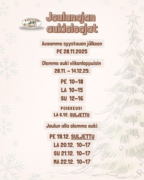 • Lauantaina 6.12. ja perjantaina 19.12. SULJETTU